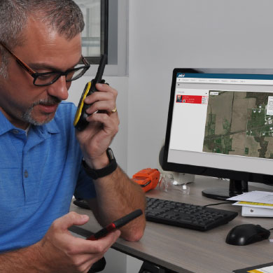 ? 即使身處辦公室,也可以通過文本消息、電子郵件和地圖信息來追蹤工作人員和儀器的狀態。